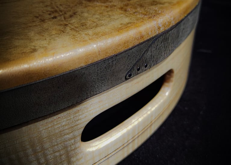 Il tamburo Bromio è progettato per offrire una profondità e un diametro della cornice elevata mantenendo un peso complessivo ideale. La membrana in pelle naturale di capra gli conferisce un suono stupendo. Grazie alla sua innovativa costruzione, lo spessore della cornice può essere ridotto fino a 6-7 mm, poiché il sistema di accordatura è collocato internamente, vicino alla membrana. Ciò permette una maggiore praticità e un’ottimizzazione delle regolazioni sonore. Per regolare la tensione della pelle, è possibile agire sulle micro viti in acciaio inox, che garantiscono non solo un semplice intervento, ma anche un'estetica gradevole. Questo design rende il tamburo Bromio un'ottima scelta per musicisti che cercano versatilità e qualità sonora senza compromettere il peso ideale dello strumento.